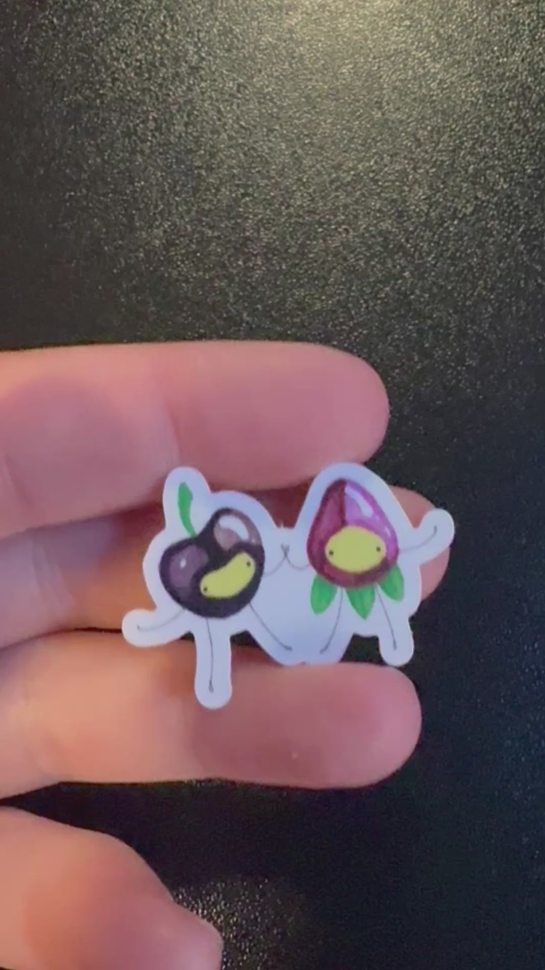 This cherry and strawberry combo is one of my most popular designs! Digitally made and turned into a cute bite sized sticker.
